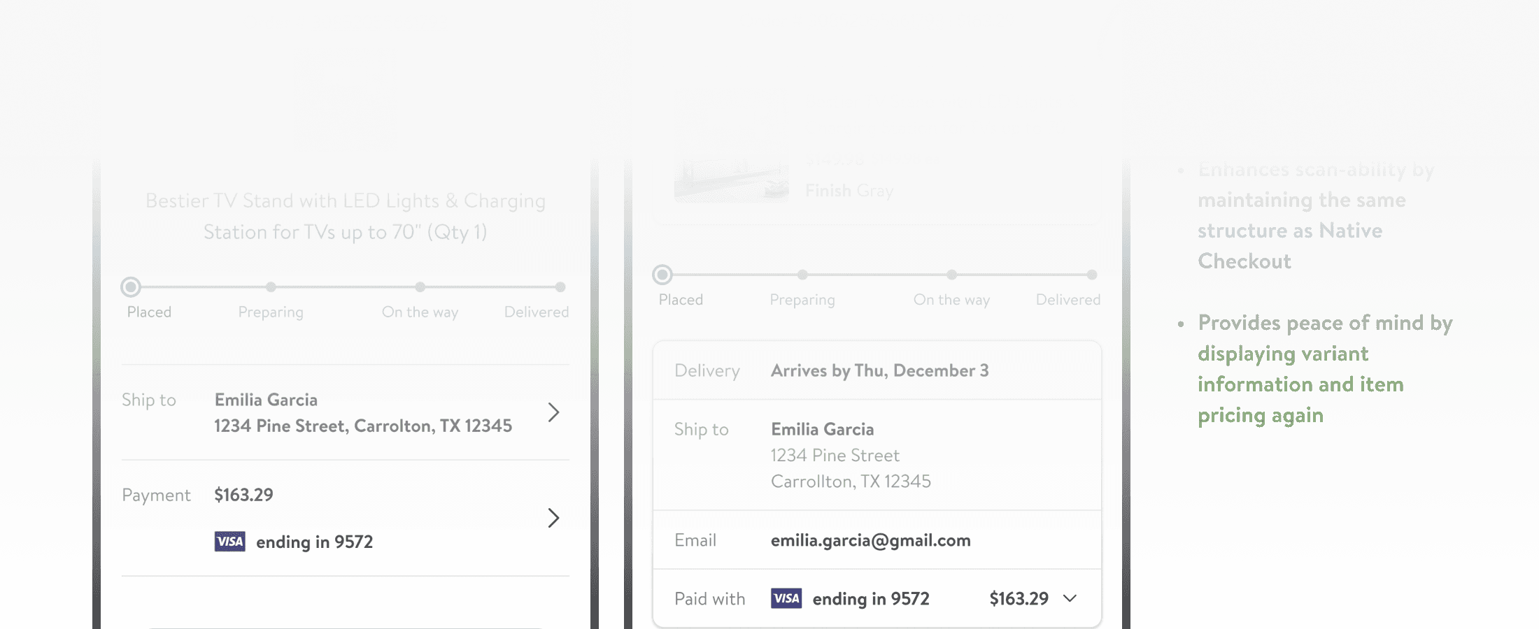 Native Checkout is a Walmart checkout solution that allows users to complete their purchase on a single-page screen through 3rd party platforms, bypassing a lengthy checkout process. Despite its streamlined approach, NC encountered issues that hindered its performance against our user satisfaction and conversion benchmarks. Our goal was to enhance the interface based on usability studies to address these issues.